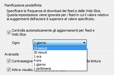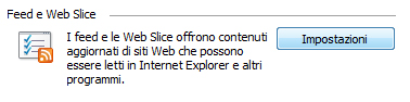 Nel tab "Contenuto", alla voce "Feed e Web Slice" selezionare "Impostazioni"