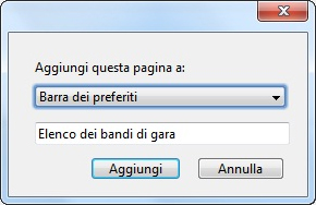 E' possibile aggiungere alla toolbar dei Preferiti. Dopo aver fatto click su "Aggiungi Preferito" verrà visualizzata la seguente schermata: