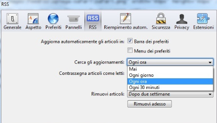 Per potere aggiornare più spesso i feed è necessario modificare una opzione di Safari per il controllo automatico degli aggiornamenti. Dal menù Preferenze di Safari selezionare "RSS" ed impostare la voce "Cerca gli aggiornamenti" ad esempio ogni ora.